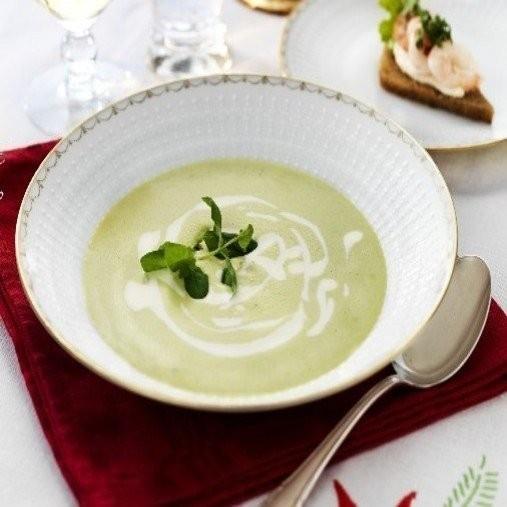 Vid hel måltid dubbla receptet.Härligt grön och krämigt god ärtsoppa med asiatiska inslag som wasabi och koriander. Här möts spännande smaker. Servera soppan tilsammans med räksnittar.
