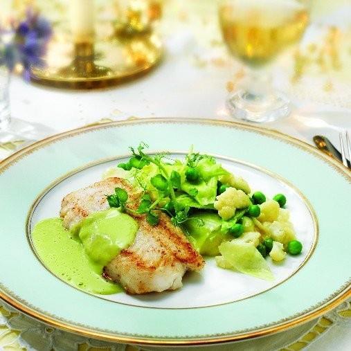Kapkummel med vårgrön sås och pepparrotsmos