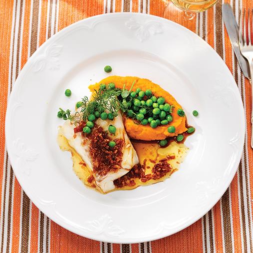 Torskfilé med morotspuré och brynt soyasmör