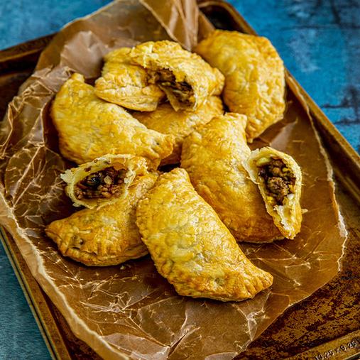Vem gillar inte empanadas? Fyllda med härlig fyllning av vegansk formbar färs, oliver, lök och russin. Den formbara färsen är lätt att smaksätta för att få till den rätta latinska smaken!
