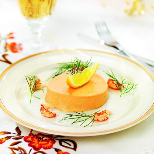 Skär upp i vackra bitar och toppa med smetana/crème fraiche och kräftstjärtar. Avsluta med en dillvippa och citronklyfta. Servera med en skiva bröd och ost.Fisk- och skaldjursterrine med kräftstjärtar och citron, middagsrätten är lika fin att titta på som god att äta. Perfekt rätt att servera vid lite lyxigare tillfällen.