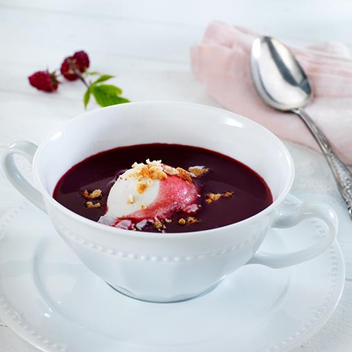 Hallonsoppa, flytande