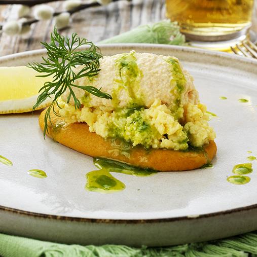 En härligt lyxig toast i timbalkonsistens. Toppas med smakrik laxmousse på Laxtimbal med röksmak. Timbalkonsistensen gör att många fler kan få njuta av denna underbara rätt!