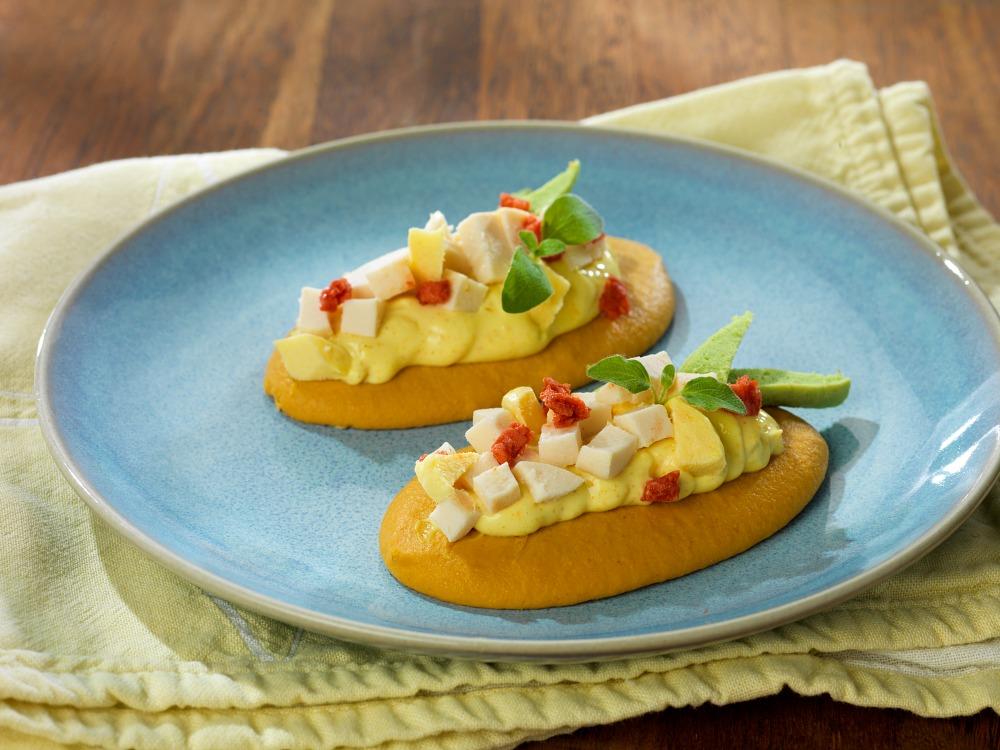 Kycklingsmörgås med currykräm, timbal