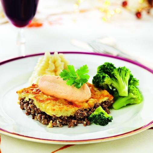 Köttfärsgratäng med jordärtskockscrème och potatismos