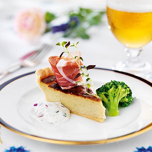 Servera pajen med skinka och broccolibuketter.Ost- och päronpaj är lagad med Findus päronpuré, som är gjord på solmogna päron i en helt slät puré. Purén är utmärkt att använda till matlagning.