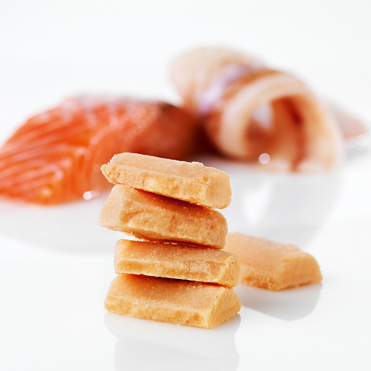 Fiskpuré av odlad ASC-märkt lax samt hållbart fiskad MSC-märkt Alaska Pollock. De två fisksorterna ger purén en fin färg och god smak. Bekvämt och enkelt när du ska laga timbaler eller som grund i en fisksoppa. Lösfrysta bitar för enklare matlagning.