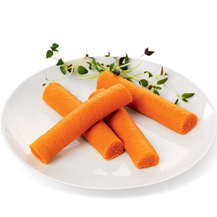 Morot 63 %, ÄGGVITA, rapsolja, modifierad majsstärkelse, ÄGGULEPULVER, ÄGGVITEPULVER, grönsaksbuljong (salt, potatisstärkelse, lökpulver, palsternackapulver, morotspulver, rapsolja, libbstickaextrakt, purjolöksextrakt, libbsticka, gurkmeja), lökpulver, salt, vitpeppar.