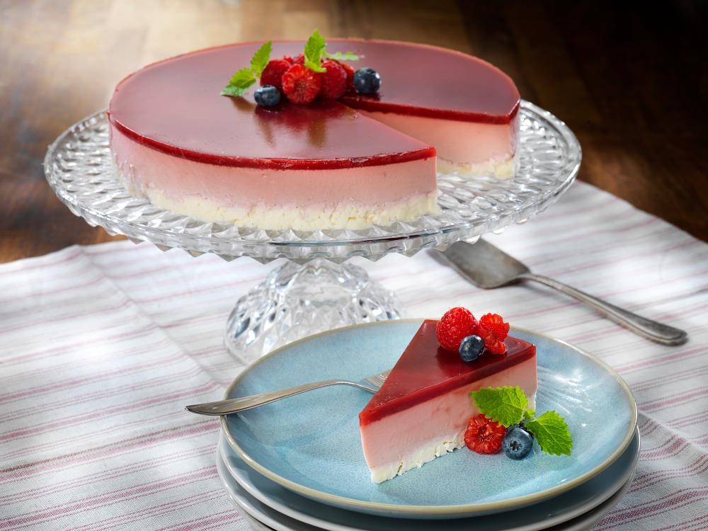 Häll sedan pannacottan i formen och ställ i kylen ca 3-4 timmar. När den har stelnat häller ni på hallongelén och ställ i kylen ytterligare en timme.