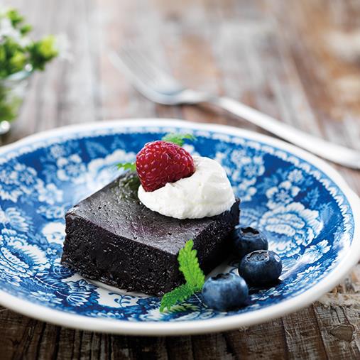 Servera även med färska bär.En härligt krämig och god chokladkaka. Kakan är berikad och ger ett extra tillskott av både energi, protein och näring. En kaka som funkar lika bra till fika som till dessert.