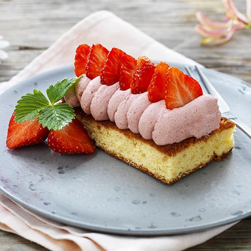 Mandelkaka med jordgubbsmousse