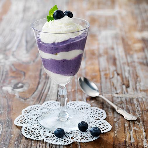 2. Varva blåbärsgröt och kvarggrädde i vackra glas. Ställ kallt minst 1 timme.