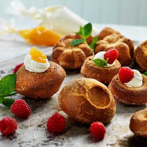 Testa att även lägga till en klick lemoncurd som topping. Det i kombination med grädde och bär blir smaskens.Servera små, söta sockerkaksbakelser som är ett kul alternativ till tårtan på kalaset. Berikade med