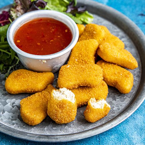Veganska nuggets i chicken style. Krispiga nuggets gjorda på veteprotein som passar perfekt att servera till olika dippsåser. Ett måste på restaurangmenyn!