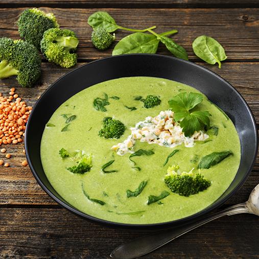 Spenat- och broccolisoppa med linsröra