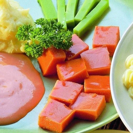För variation smaksätt potatismoset med grönsakspuré.Biff à la Lindström är en svensk klassisker. Här är den gjord i gelékonsistens, perfekt att erbjuda som alternativ till de som äter konsistensanpassad kost.