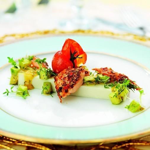 Blomkålsterrine med kryddbakad lax, grov paté
