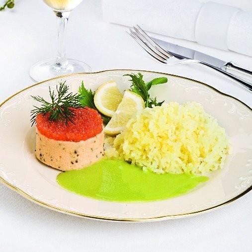Servera varm eller kall med pressad potatis och Ärtiga såsen, se sid 100 i MRS eller sök recept på vår hemsida.Fisk- och skaldjursterrin är gjord på bland annat Findus fisk- och räkpuré som är MSC märkt och gjord på finpasserat fiskkött och finpasserade räkor. Det ger fin färg och härlig smak av havets läckerheter.