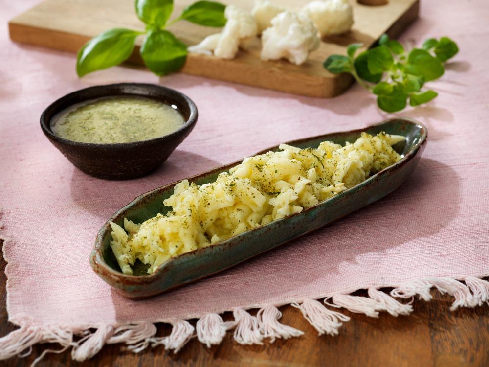 3. Vänd ner dressingen med den rivna blomkålstimbalen.