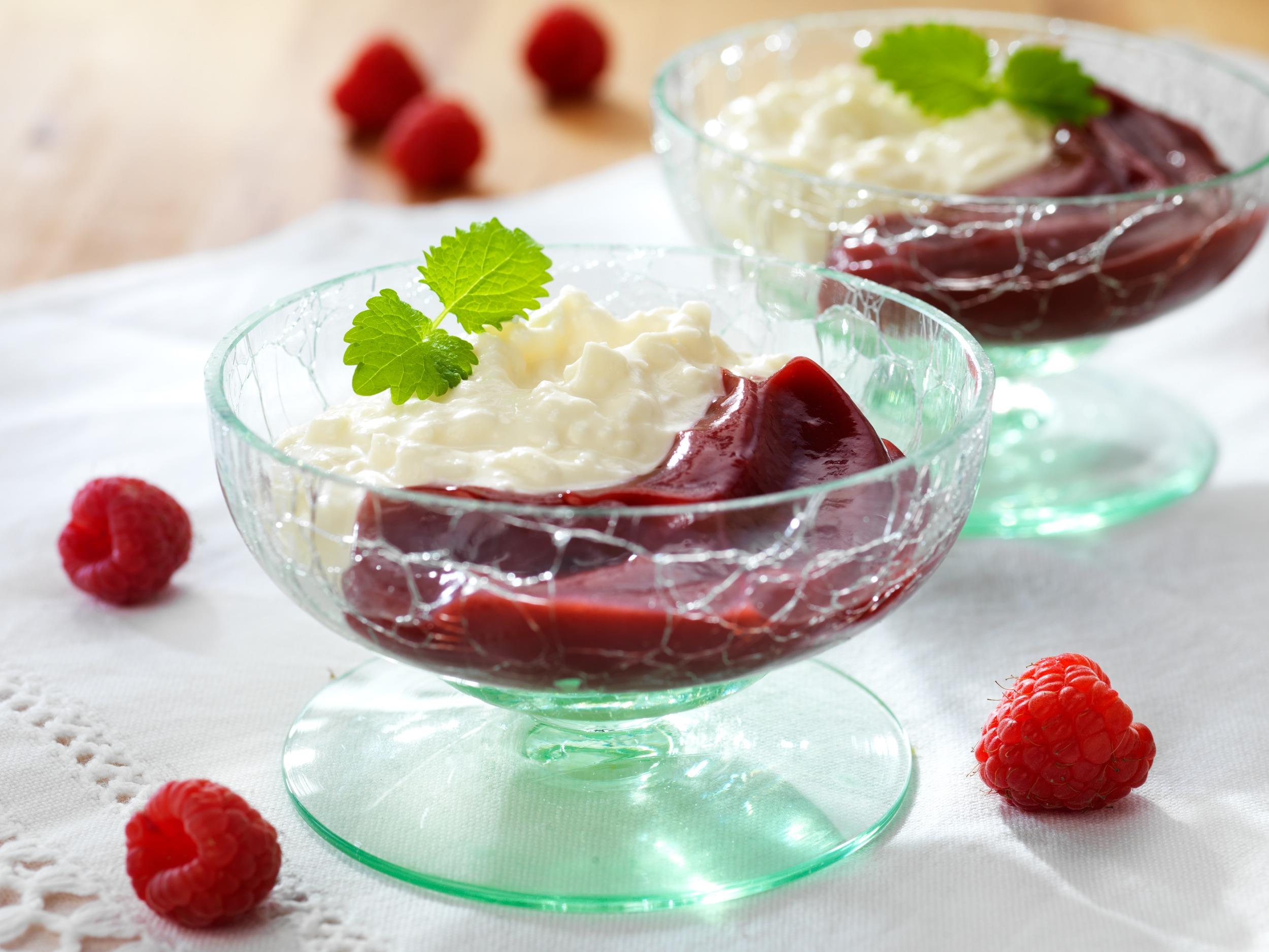 Värm upp hallonpuré med socker. Rör ner Thick and Easy™ till önskad konsistens. Låt svalna.