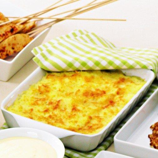 1. Blanda puré, ägg, grädde och ost. Smaksätt.