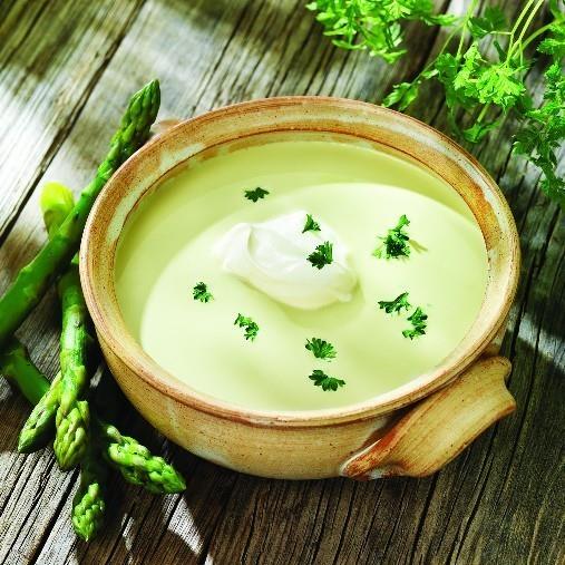 Servera med crème fraiche, smaksatt med citron.En smakfull sparrissoppa i flytande konsistens, lagad på Findus sparrispuré. Med purén kan du servera vårens primörer året om. Härligt grön färg med mild smak - utmäkrt för soppa!